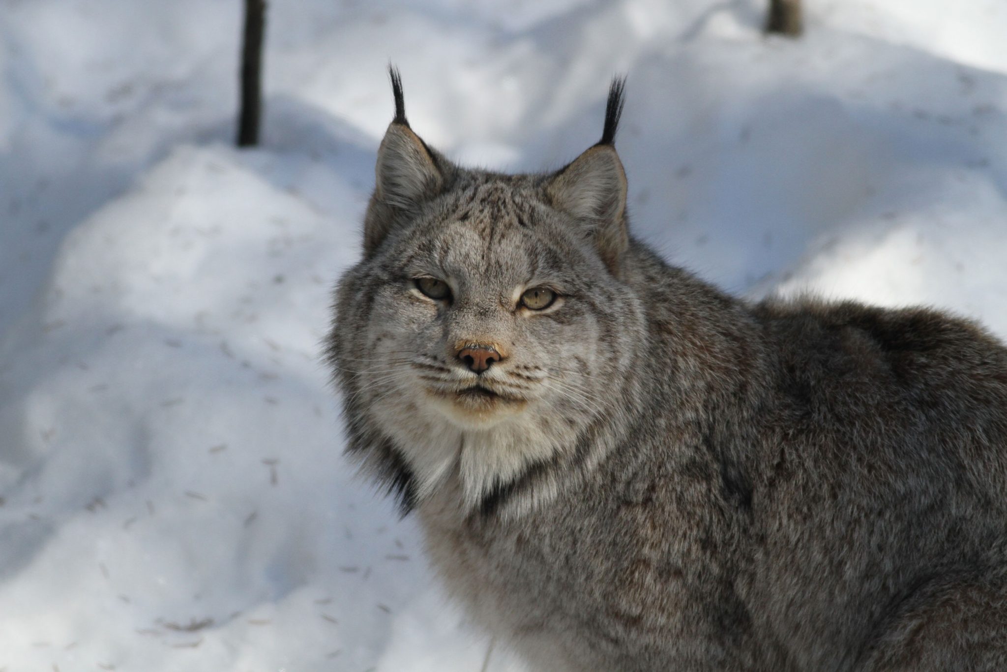 Carnivore, il se nourrit principalement de lièvres d’Amérique, mais il s’attaque également à de nombreux autres petits mammifères, oiseaux et à l’occasion, à des poissons.