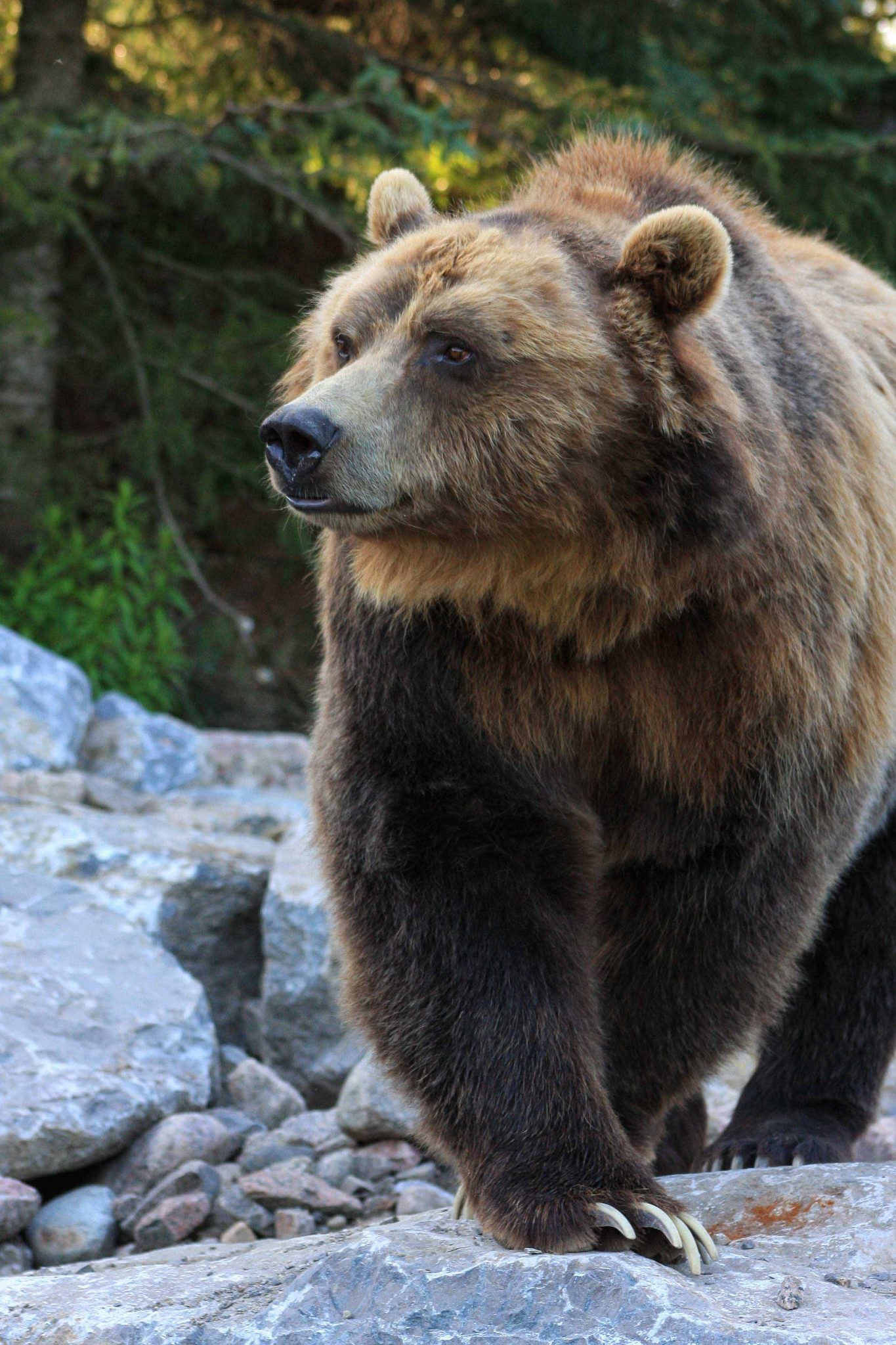 Omnivore, il se nourrit principalement de végétaux mais aussi d’insectes, de poissons, de petits mammifères et de cervidés, jeunes ou malades.